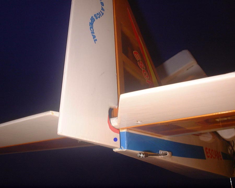 Question: I am about to install the vertical stabilizer into my Escape. I find that when I am dry fitting and testing the installation of the vertical stabilizer before gluing that the rudder prevents full deflection of the elevator. The notch in the rudder that is intended to provide sufficent clearance appears to be slightly too high when viewed with the model top side up. What do I do?